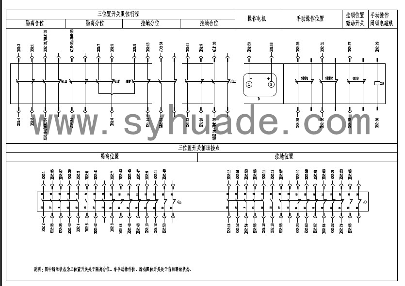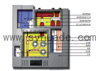 斷路器及三工位開關(guān)操作機構(gòu)位于設(shè)備前上部,機構(gòu)同時具備手動及電動操作功能。